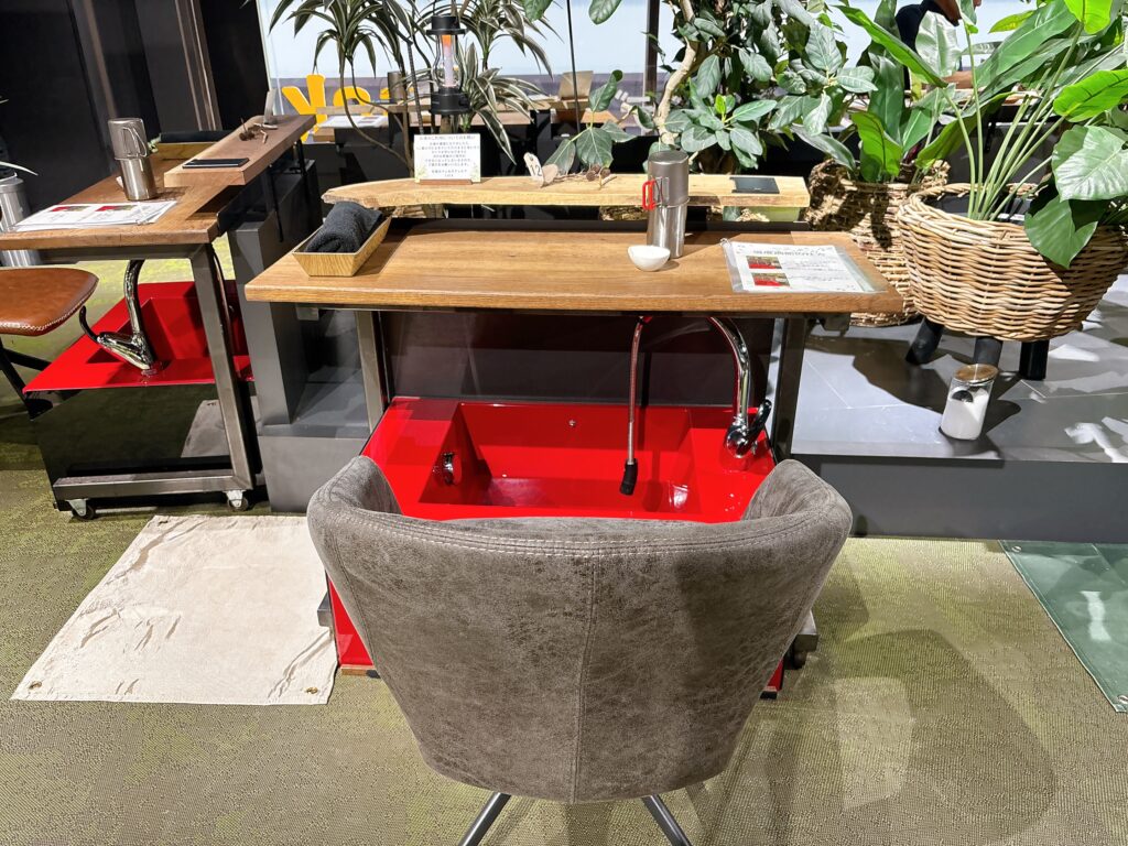 テーブルも用意されているため、足湯と特製のスイーツを楽しみながらデスクワークを行えたりもできます。