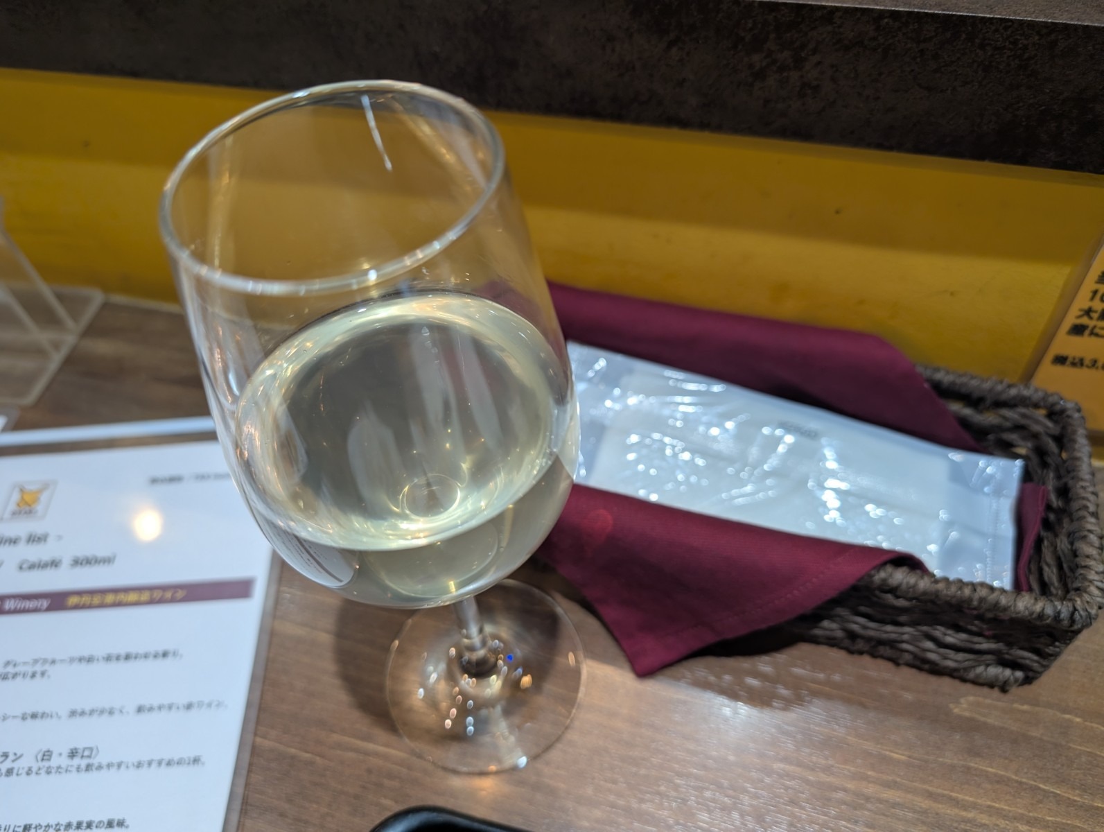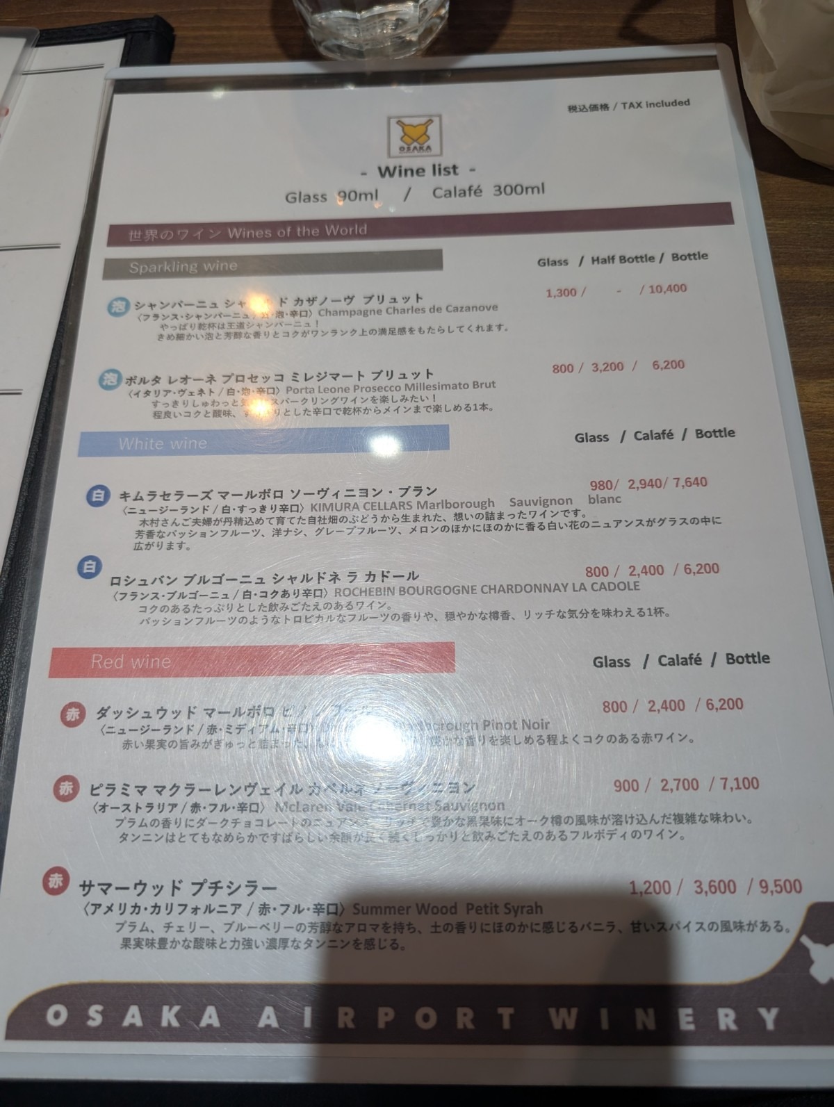 ガラスの上部には、ワインリストも。