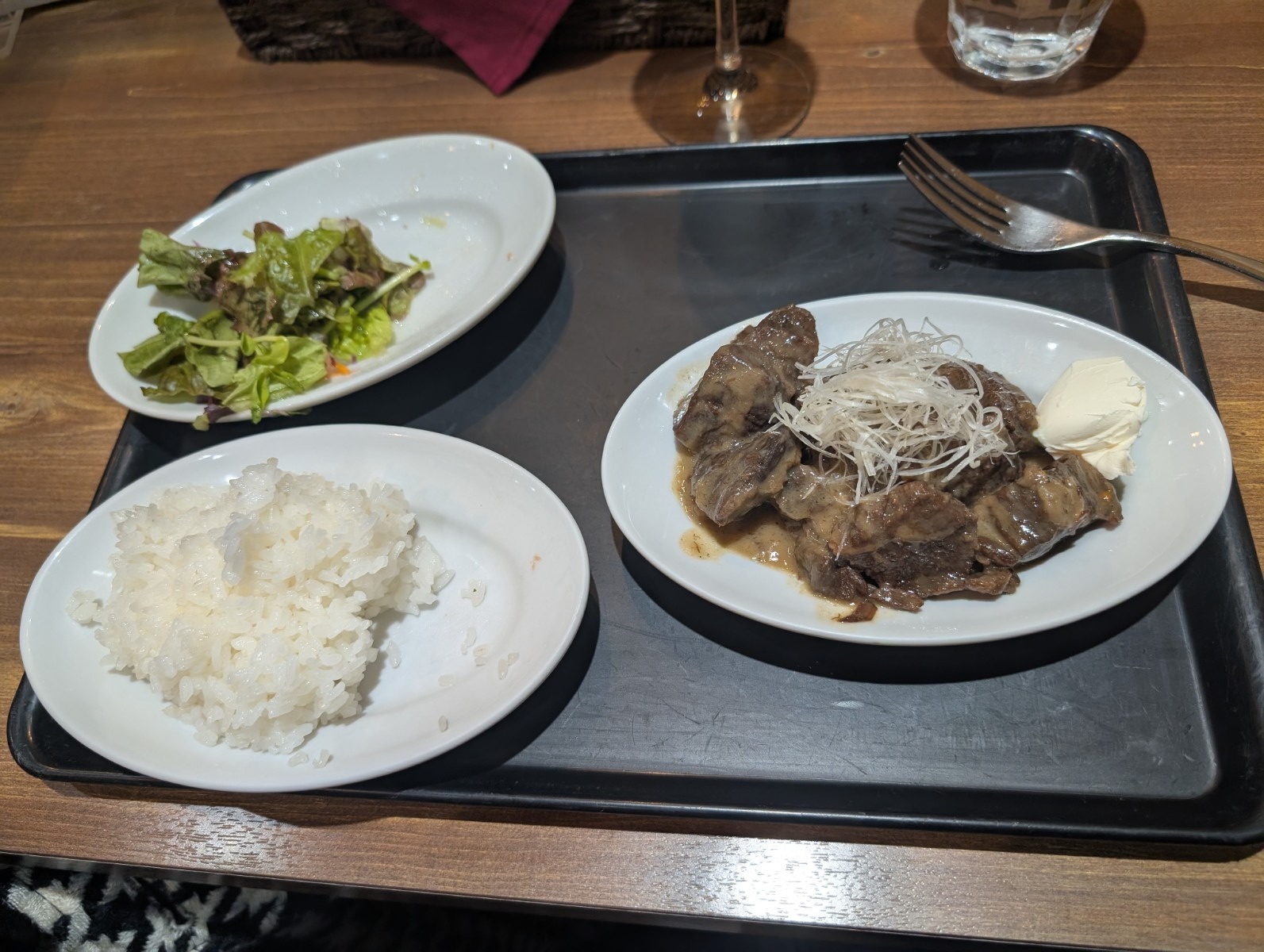 ミニサラダもドレッシングの味がしっかり付いていて食べ応えがありました。