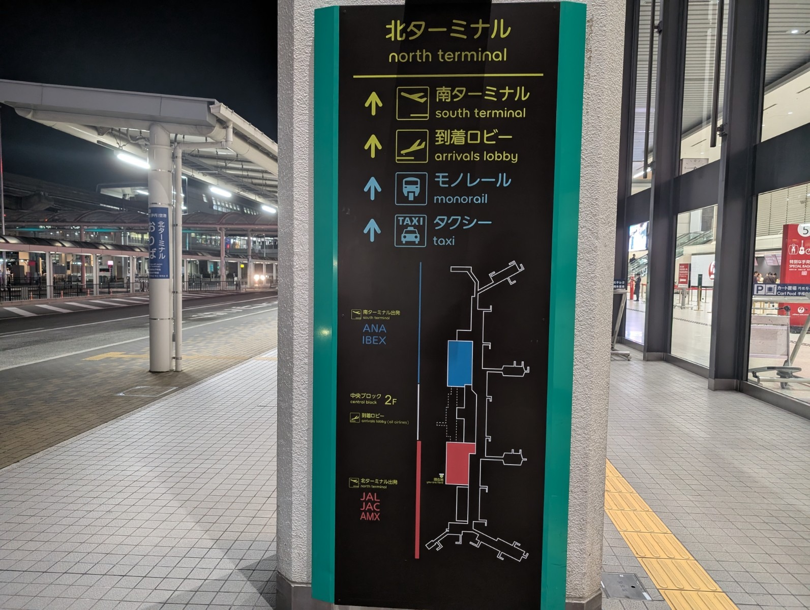 北ターミナル(JAL側)、南ターミナル(ANA側)のどちらからでも行けますが、今回は北ターミナルから入ってみました。