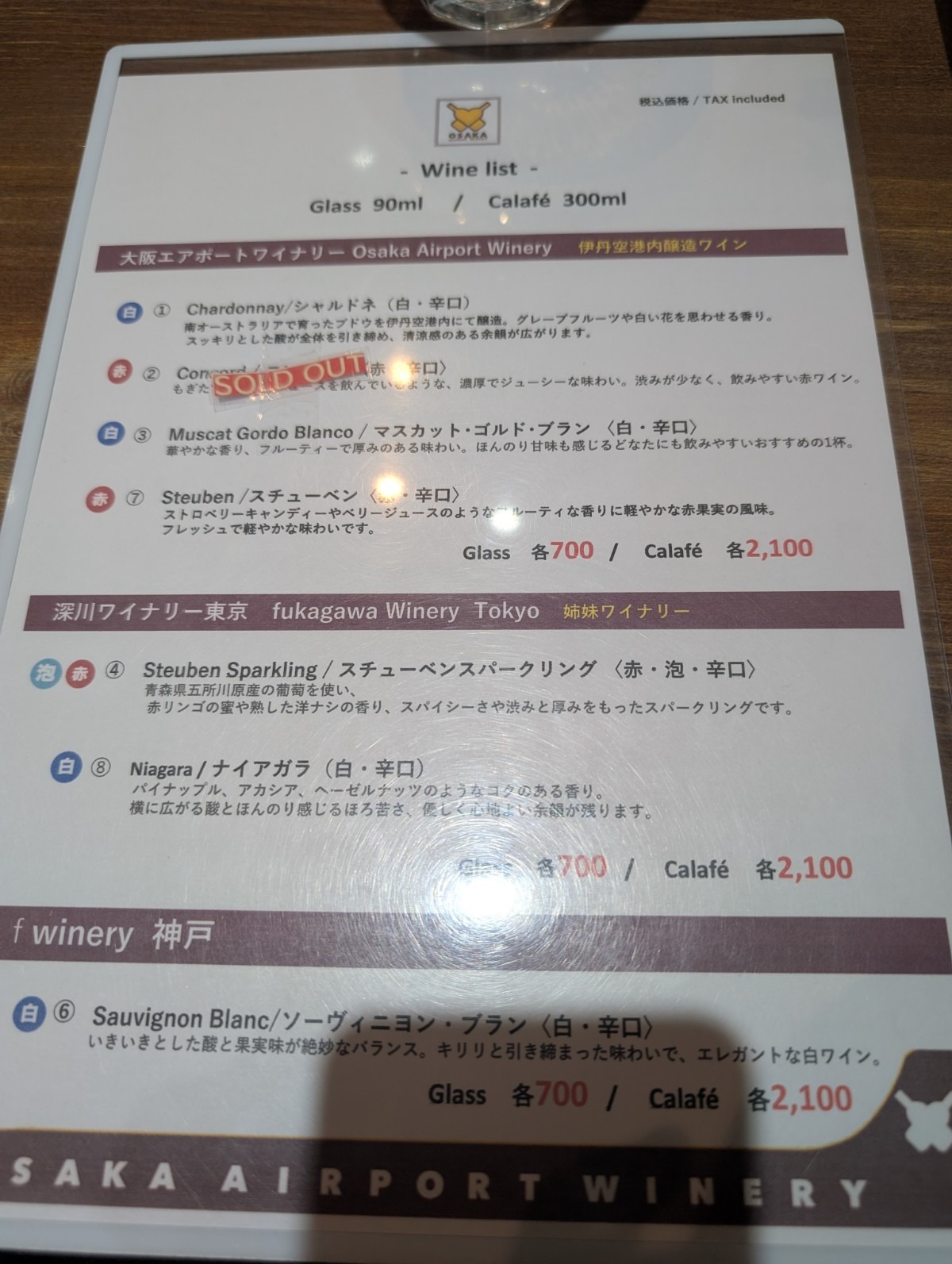 日にちや時間帯によっては売り切れになっているワインもあるため、注意しましょう。