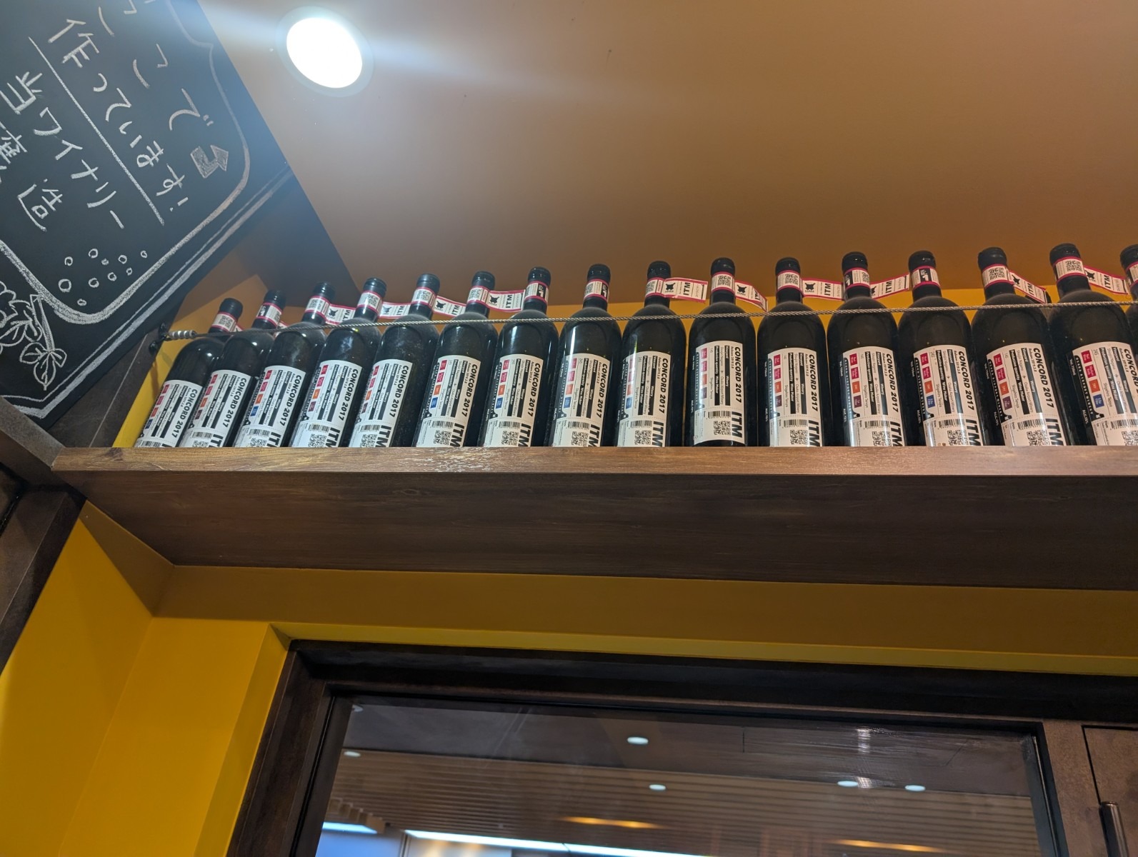 店内の棚の上にはワインボトルがずらり。ワイン好きなら思わず見上げてしまうこと間違いなし。