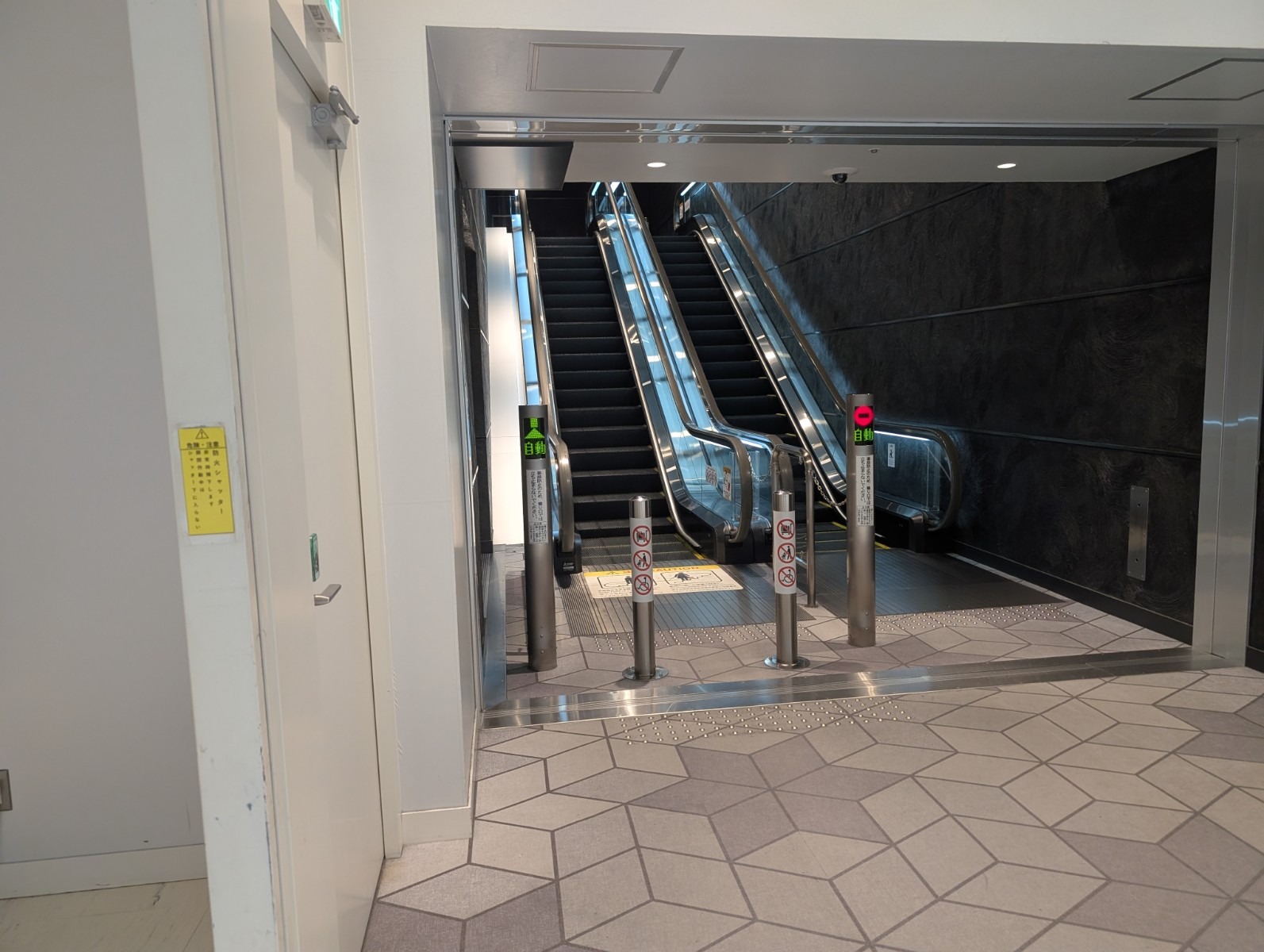 階段の右側にエスカレーターがあります。