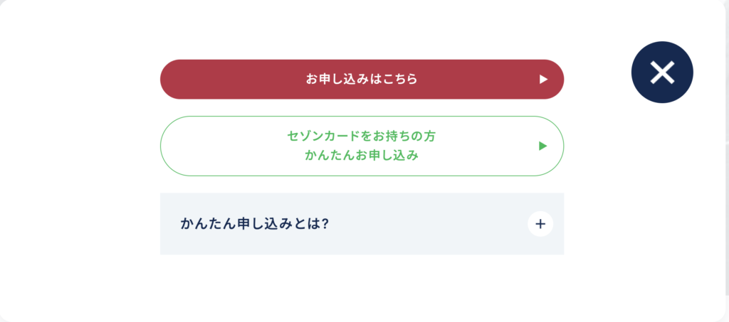 ちなみに、既にセゾンカードを持っていてNetアンサーに登録している方は、通常よりも申告する内容が少ない「かんたん申し込み」からも申し込みができます。